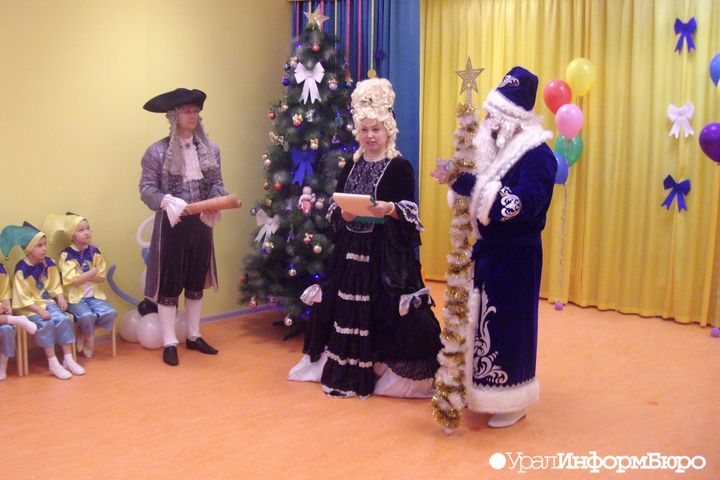 Детский сад на улице Де Геннина открывает... сам Вильгельм де Геннин в компании императрицы Екатерины и Деда Мороза.